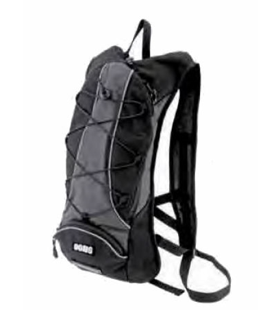 Zaino sportivo per bicicletta Ogns modello Back-pack in tessuto impermeabile, completo di elestici per il fissaggio del casco e sacca porta liquidi, disponibile in due colori.